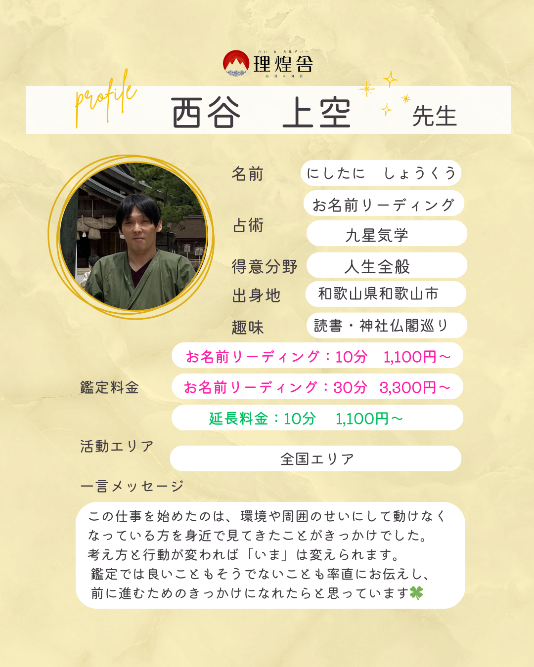 お名前リーディング・九星気学鑑定 ―西谷 上空先生―
