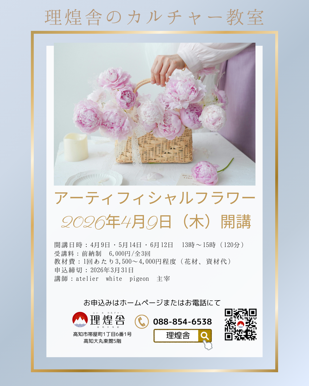 こちらからお申込みください。または☎ 854-6538 理煌舎まで