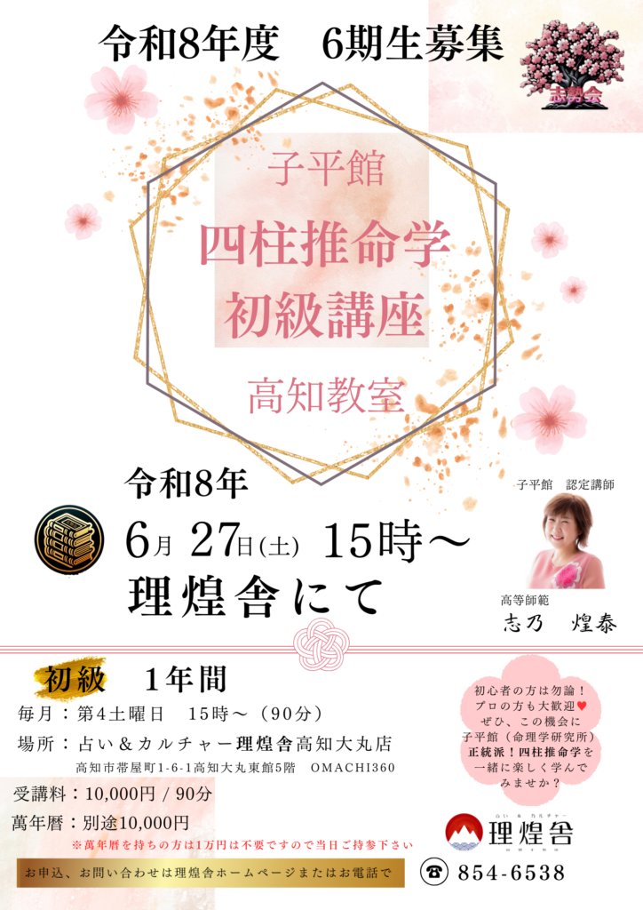 四柱推命学講座☯令和8年度生募集中!5/31締切