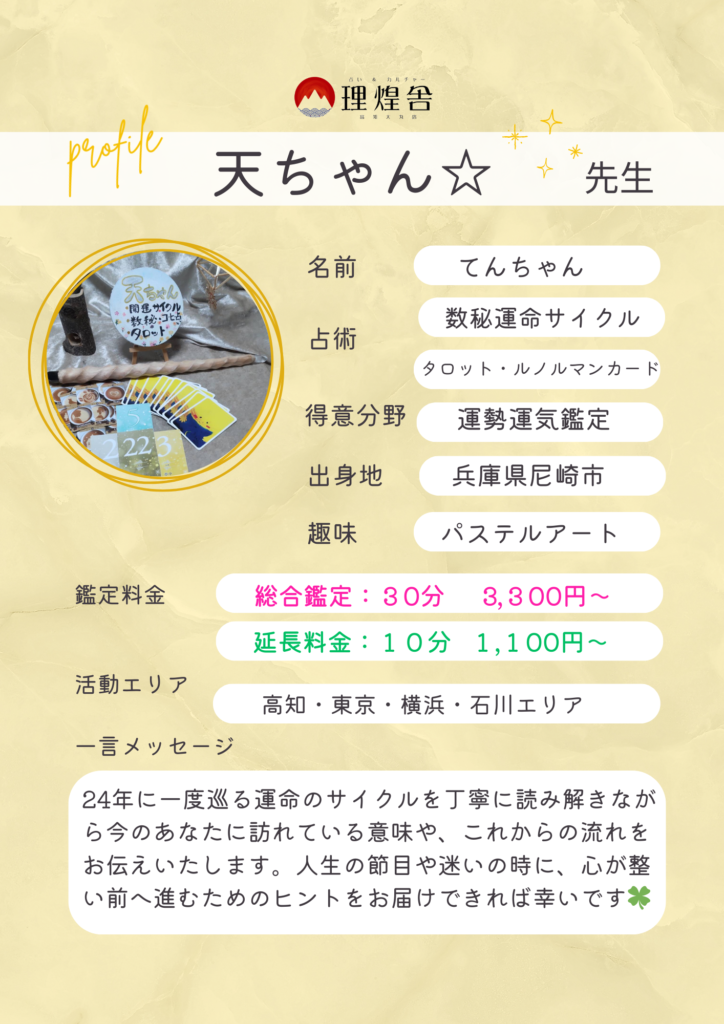 数秘運命サイクル・各種カード鑑定 ―天ちゃん☆先生―